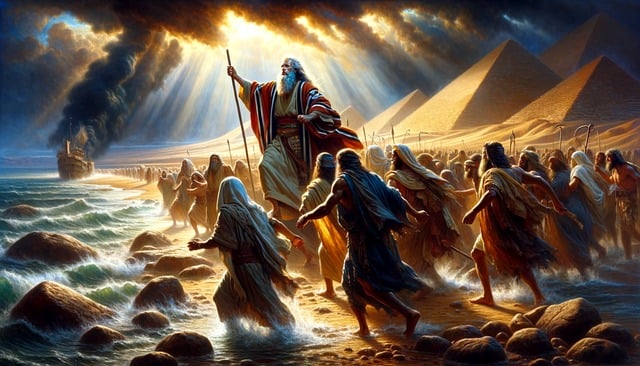 장자 재앙 이후, 바로는 마침내 이스라엘 백성을 풀어줍니다. 이스라엘 백성은 430년간의 애굽 생활을 마치고 떠나게 됩니다. 하나님은 낮에는 구름 기둥, 밤에는 불기둥으로 그들을 인도하셨습니다. 그러나 바로는 다시 마음을 바꾸고 군대를 이끌고 이스라엘을 추격합니다. 홍해 앞에 도달한 이스라엘 백성은 두려움에 빠졌지만, 하나님은 모세를 통해 홍해를 가르시고 이스라엘 백성은 마른 땅을 지나가게 됩니다. 애굽 군대가 추격하자, 하나님은 홍해의 물을 다시 흐르게 하여 그들을 물속에 잠기게 하십니다. 이로써 이스라엘은 애굽의 노예 생활에서 완전히 해방됩니다.